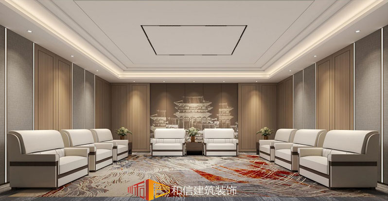 會(huì)客廳,中式沙發(fā)將中華文化的大氣磅礴、雍容華貴,融入現(xiàn)代設(shè)計(jì)語(yǔ)言中,兼具藝術(shù)性和功能性,使貴賓室風(fēng)格簡(jiǎn)練、大氣又不失意蘊(yùn)。