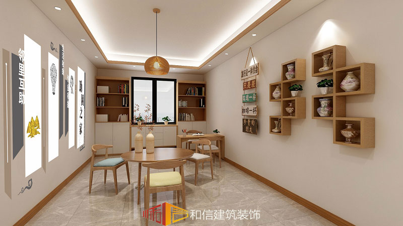 接待區(qū)整個(gè)空間為原木色調(diào),令人向往的溫暖空間,色彩和紋理和諧交融,簡(jiǎn)致純粹的自然底色,舒適溫馨而不失格調(diào),置身其中,觸摸著原木質(zhì)感的家具,嗅著原木質(zhì)樸的芳香,看著滿眼溫暖的木色,人們?cè)谶@里看書、休憩、鄰里喝茶,彰顯出一種返璞歸真的氣息。